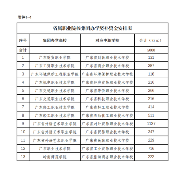 ● 省属职业院校集团办学奖补资金5000万元