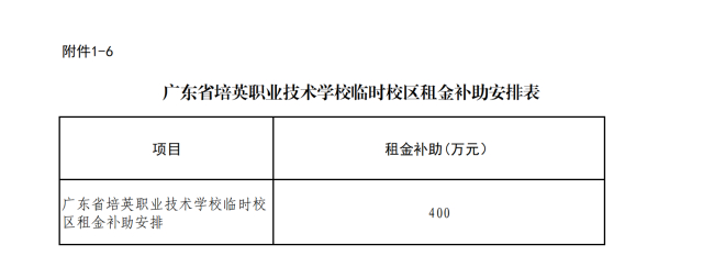 ● 培英职业技术学校临时校区租金补助400万元