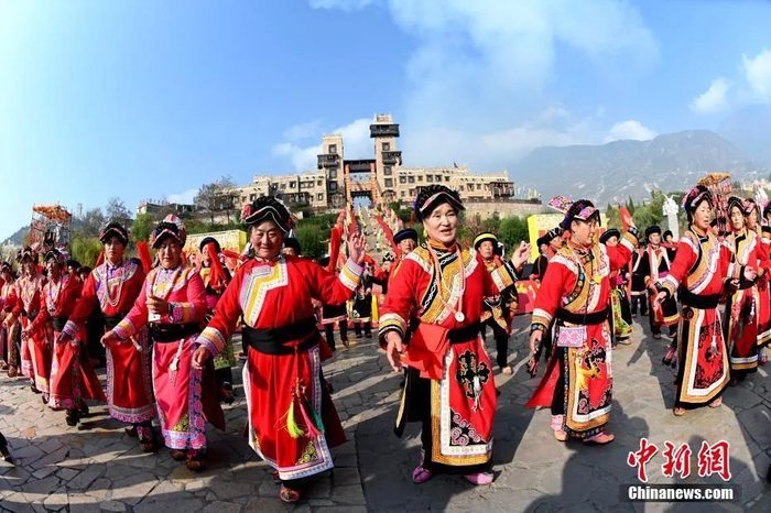 资料图:羌族民众载歌载舞欢庆羌年。中新社记者 安源 摄