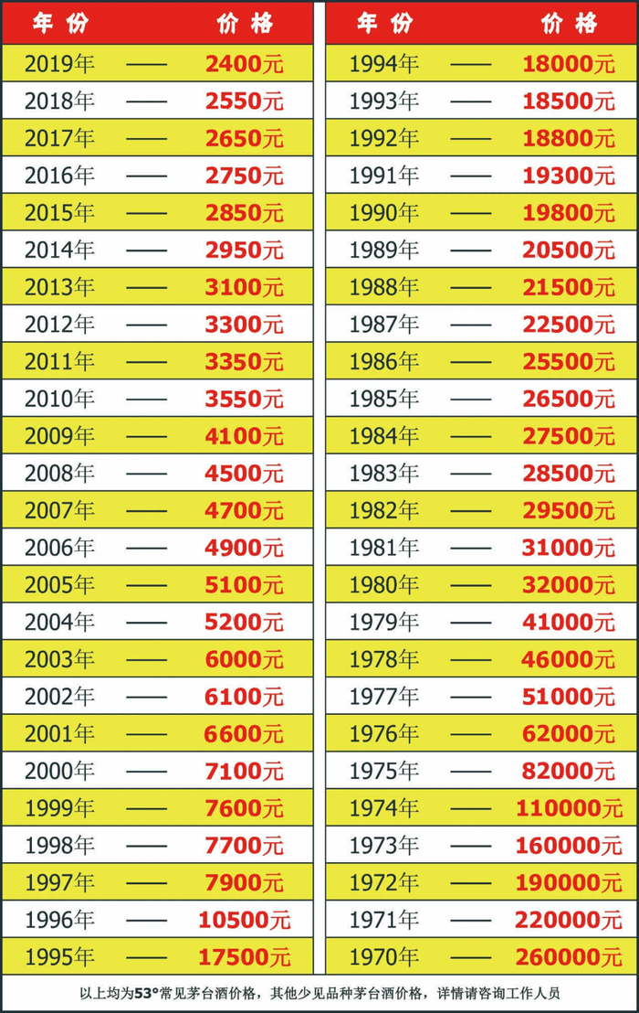 1953到1969年茅台10万-260万/瓶