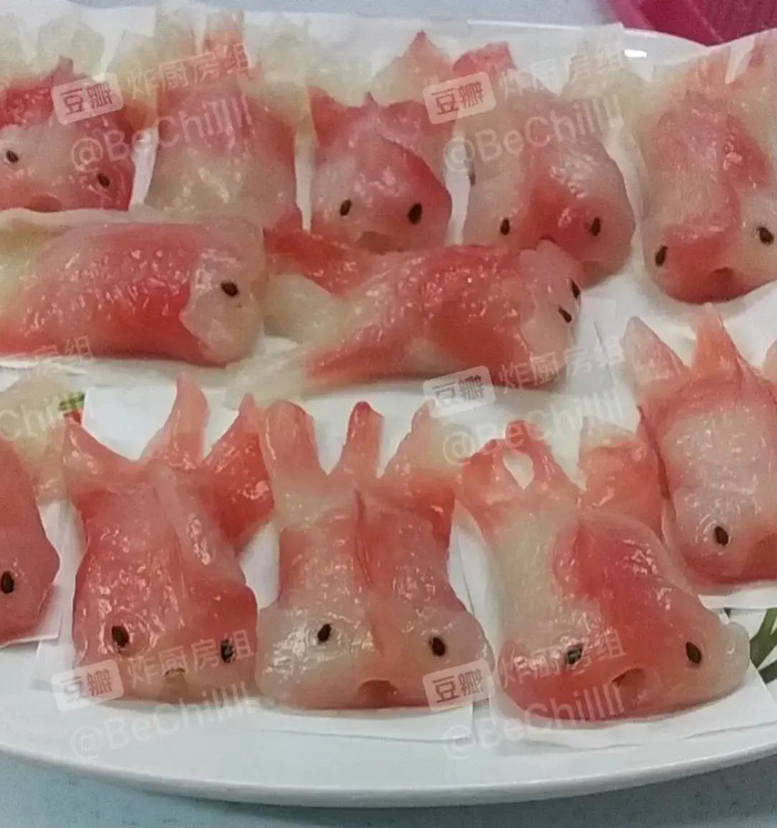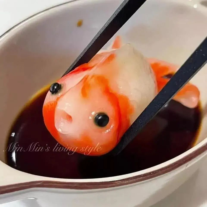 做出“蝾螈饺子”的黄女士后来还从失败中总结:“其实这个金鱼可以做得再圆/肥一点就不会看起来那么可怕。另外眼睛的部分可以找再圆/大一点的种子或者画上去。”