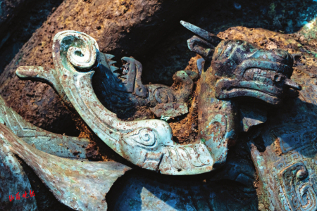 “出乎意料的是,此次还出土了一些闻所未闻、见所未见的青铜器,比如有些青铜尊附着有奇异诡谲的龙或牛的造型。”四川省文物考古研究院三星堆遗址工作站站长雷雨说。