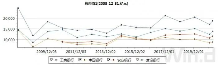 中国银行与工商银行、农业银行、建设银行并称为四大国有商业银行。在四大行中,中行资产规模、净利润最低,且与其他三家银行差距有扩大的趋势。市场的反馈更加明显,中行最新市值9000亿左右,约为农行的四分之三,而在2015年前后,中行市值一度超过农行。