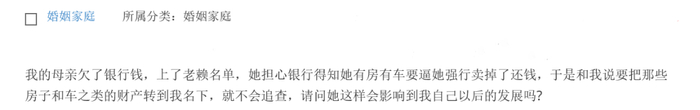 原标题:母亲被列入失信被执行人,打算把车子房子转到我名下,此行为会影响我未来的发展吗?