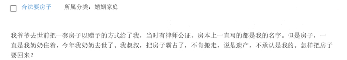 我爷爷去世前把一套房子以赠与的方式给了我,当时有律师公证而且房本上一直写的都是我的名字。之前房子一直是我奶奶住着,今年我奶奶去世了,我叔叔就把房子霸占了不肯搬走,说房子是遗产,不承认是我的,我怎样把房子要回来?