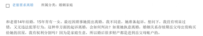 我和老婆2014年结婚,2015年育有一女,最近因琐事她提出离婚,我不同意她就准备起诉。想问下,我没有明显过错又无违法犯罪行为。这种单方面的起诉离婚,会如何判决?如果她执意离婚,婚姻关系存续期岳父母出资购买给她的房屋,我有权利分割吗?因为是家庭生意,所以婚后很多财产都是进到岳父母账户的。