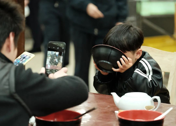 孩子捧碗品尝鲜美的刀鱼汤