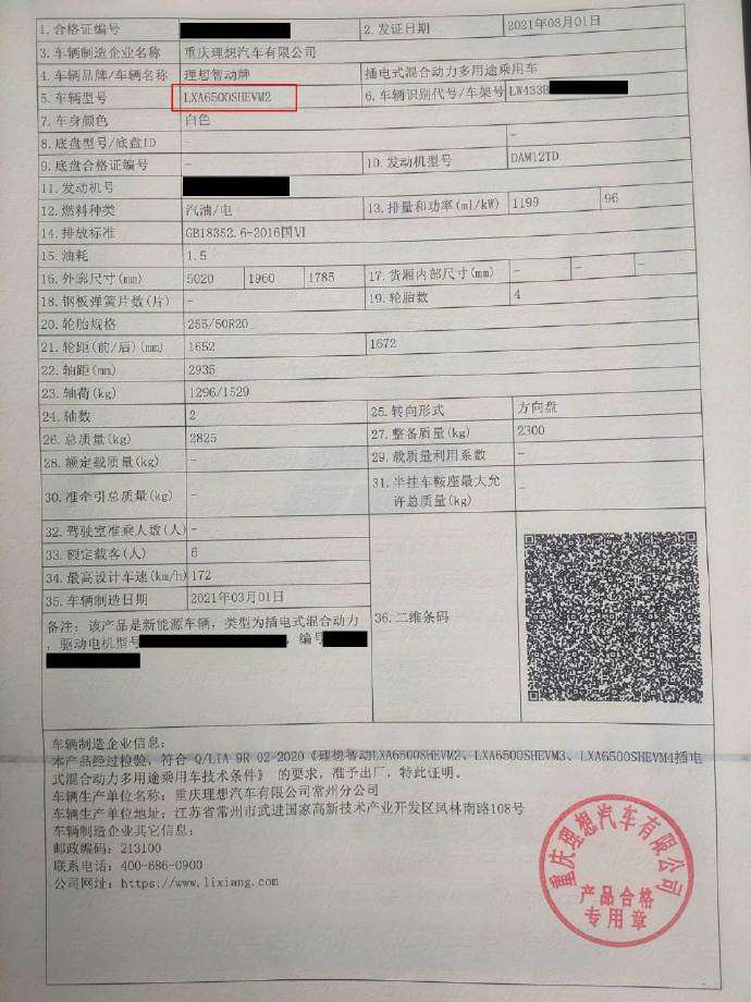 理想ONE被撤销的型号是LXA6500SHEVM1,这个型号已经不再销售,所以在申报一年后被工信部自动撤销。