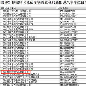 3月23日,工信部发布关于拟撤销《享受车船税减免优惠的节约能源 使用新能源汽车车型目录》和《免征车辆购置税的新能源汽车车型目录》车型名单的公示。