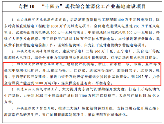推进煤炭项目建设,着力打造煤炭产运储销体系,提高煤炭安全稳定供给保障能力。依托现有酒嘉多式联运物流园建设河西煤炭集散基地,建设金昌、嘉峪关储煤基地,保障河西地区用能安全。完善甘肃煤炭交易中心功能,建立统一开放、竞争有序、覆盖全省、链接西北的现代煤炭交易体系。