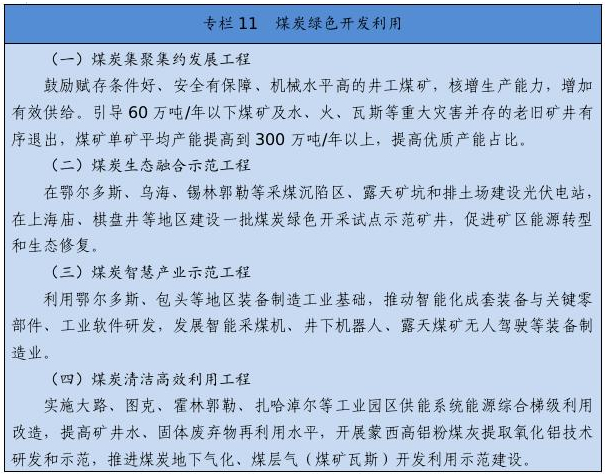 坚持绿色化、精细化、循环化导向,以鄂尔多斯地区为重点,适度发展煤制油、煤制气、煤制甲醇、煤制烯烃、煤制乙二醇等产业。