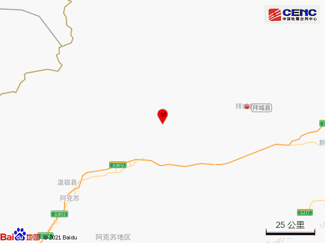 新疆阿克苏地区拜城县发生5.4级地震