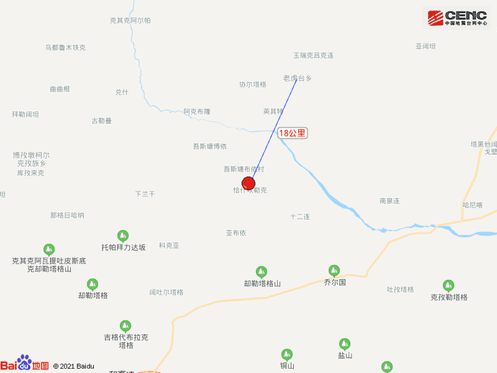 附近村镇:本次地震周边5公里内的村庄有恰什坎勒克、吾斯塘布依村、托万克买里、阿勒台拱拜孜村、铁热克博斯坦、阿克苏买里斯,20公里内的乡镇有老虎台乡。
