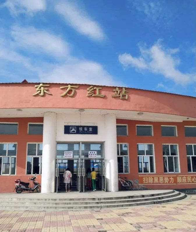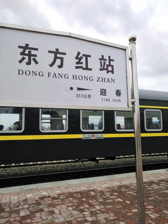 新中国成立后,在中共中央的号召下,从1958年6月开始,先后有数十万的知识青年高举垦荒的旗帜来到北大荒,把宝贵的青春留给这块土地,让黑土地上焕发出勃勃生机。同样在1958年,东方红火车站开始建立。在抚远站建成之前,王震将军把这个站定名为“东方红”,取意全国最早迎来太阳的地方。东方红镇依山傍水、风景如画,传承了老一辈人建设北大荒锲而不舍的精神,是“红色之旅”的打卡胜地。