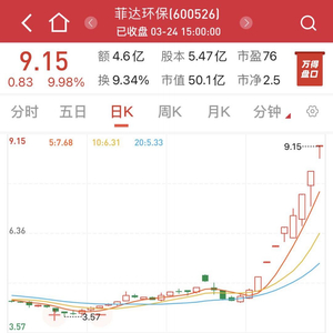 菲达环保3月24日发布公告称,公司股票于2021年3月15~18日、3月22~24日,七个交易日收盘价格涨停,公司近期股票涨幅远高于环保行业平均水平;公司目前动态市盈率为302.99倍,远高于环保行业平均水平;公司股票换手率近五个交易日累计达96.22%,远高于公司股票前期平均水平。公司提醒投资者注意二级市场股票交易风险。