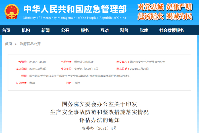 原标题:《生产安全事故防范和整改措施落实情况评估办法》印发!
