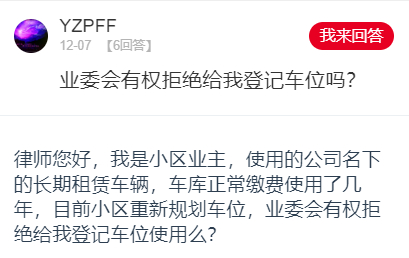 按照这位业主的描述,应该是租用的车位,车位的所有权还属于开发商或者其他业主,既然在租赁期限内,业委会当然无权以车辆登记在其他第三方名下为由拒绝登记。