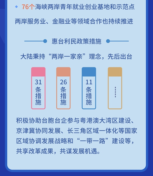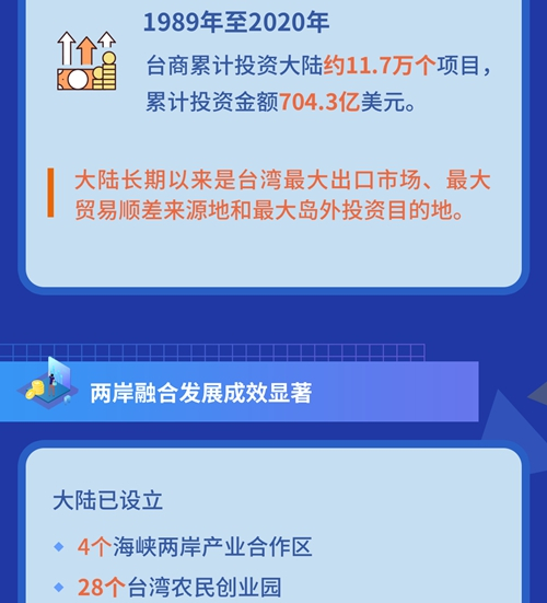 今年是实施“十四五”规划、开启全面建设社会主义现代化国家新征程的开局之年。我们坚持以人民为中心的发展思想,不断完善保障台湾同胞福祉和在大陆享受同等待遇的制度和政策,让台湾同胞分享发展机遇,参与大陆经济社会发展进程,深化两岸融合发展。