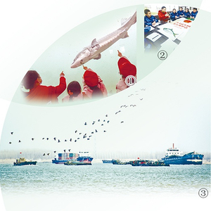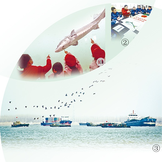 图①:在中国水产科学研究院长江水产研究所荆州太湖中华鲟保育基地,小学生正学习了解中华鲟的习性。