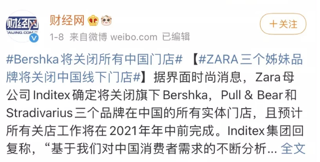 公开资料报道,2018年是海外快时尚品牌在中国市场发展的分水岭。2020年,新冠疫情席卷全球,其给快时尚品牌们带来的更是“致命”的打击。