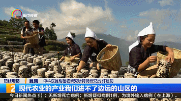 中科院昆明植物研究所特聘研究员 许建初:“因为野生的量太小了,如果把野生的香菇风味带到现代化城市,必须解决量化的问题,所以我们科学家在(解决)量化,怎么样把规模从一倍要翻到十倍的水平,只有通过人工种植。”