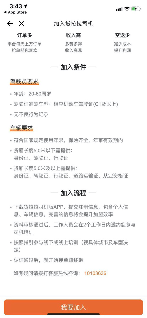 贝壳财经记者了解到,货拉拉司机端显示,注册成为货拉拉司机要满足年龄20-60周岁、拥有相应机动车驾驶证(C1及以上)、无不良行为记录。同时,也有针对不同货箱长度的资格需求。想要跨入这一行业并不难,一般情况下,司机只需下载APP注册完善个人基本信息及车辆信息后,缴纳1000元不等的押金,经过培训后就可以接单。