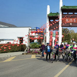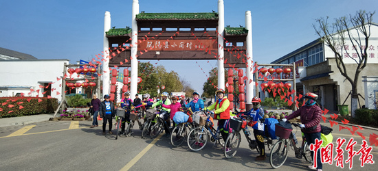 3月4日,来自河南的骑行队在小岗村游览,队员年龄大多在60岁到70岁之间。 中青报·中青网记者 王磊/摄