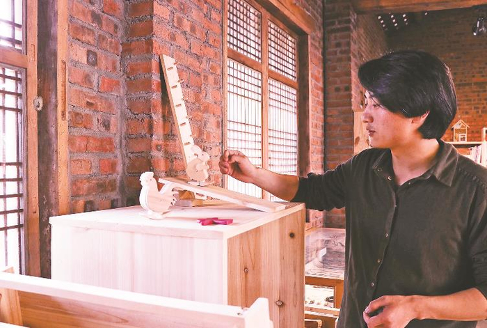 在安农书院的工作间,木工老师龚海正在制作木雕作品。“我是成都人,现在就扎根安龙村了。平时做点自己喜欢的事情,有课的时候就给小朋友们上课。”龚海说,自己已经把安龙村当成“第二个家”了。