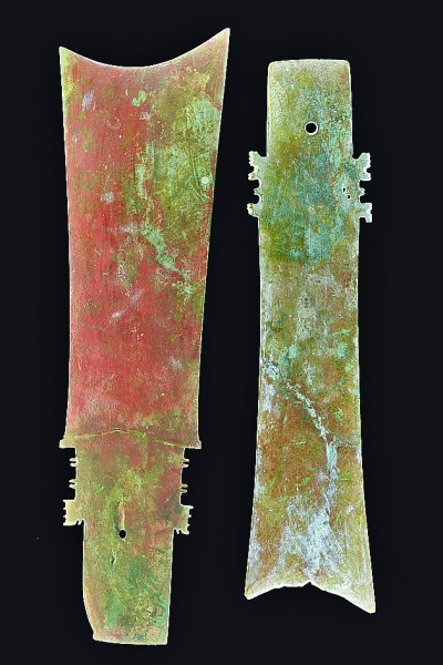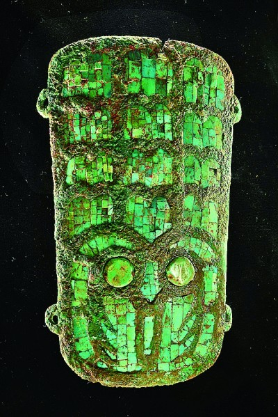 在1986年三星堆祭祀坑出土的文物中,还有镶嵌绿松石铜牌饰与二里头出土的颇为相似。“二里头遗址的镶嵌绿松石铜牌饰是贵族专用的身份标志物。”赵海涛介绍,相比之下,二里头的铜牌镶嵌绿松石,工艺难度显然更高。这些也再次印证,夏人礼仪曾在古蜀文明中流淌。