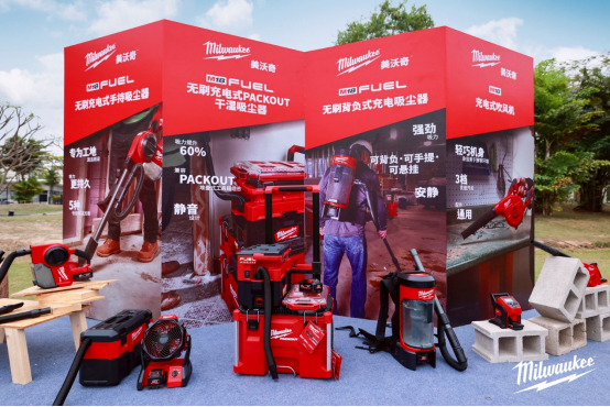 据现场工作人员介绍,现场还备有M18无刷充电式手持吸尘器、M18 FUEL无刷充电式PACKOUT干湿吸尘器等多款清洁产品,“这些产品可以轻松应对施工现场所需的清除落叶、工业垃圾等需要,尤其是可兼容PACKOUT工作系统的新款吸尘器,携带移动的效率更高。”