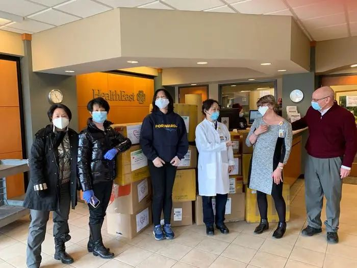 美国明州华人医生协会向当地医院捐赠防护物资。