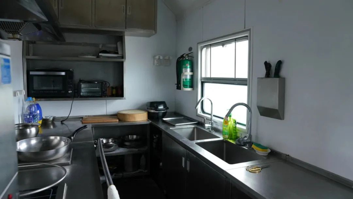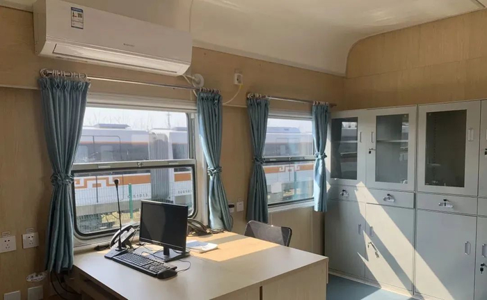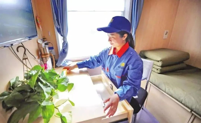 工务宿营车是为了铁路工务大机清筛、大机捣固等部门职工专门打造的移动居住场所。宿营车配备休息间、会议室、热水洗衣间、恒温浴室、车载Wi-Fi,还有宽敞明亮的食堂,堪称铁路人“流动的家”。