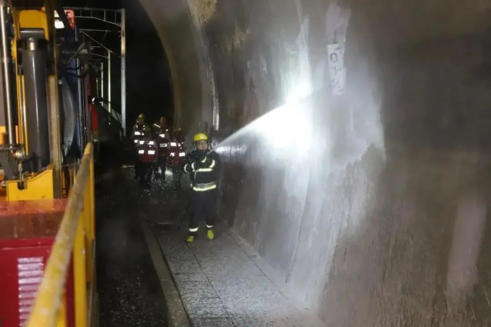 这是全国铁路第一辆“消防火车”,全称轨道交通应急综合保障车。这辆“消防火车”主要用于铁路沿线或列车的火情。此外,它还可以根据实际需要进行“变身”,利用该车的移动功能和储水功能,为铁路旅客列车和铁路工程宿营车供水配装专用高压冲洗水枪,清除线路及桥梁隧道内各种残留污物。
