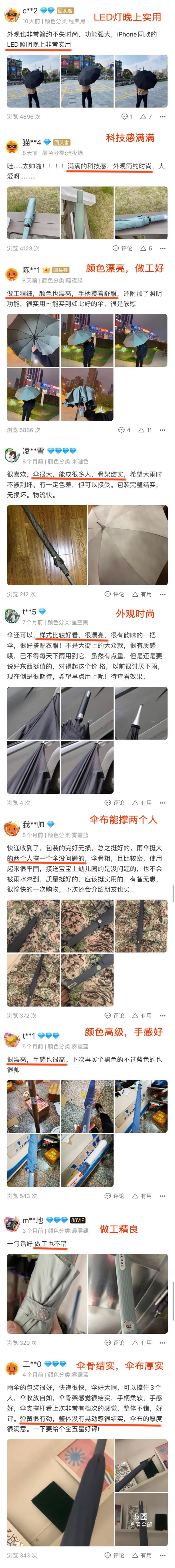无论是三摄灯伞还是长柄伞,网友的评价都很不错~