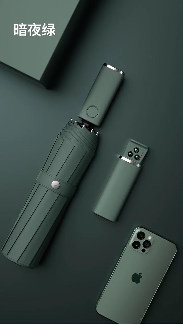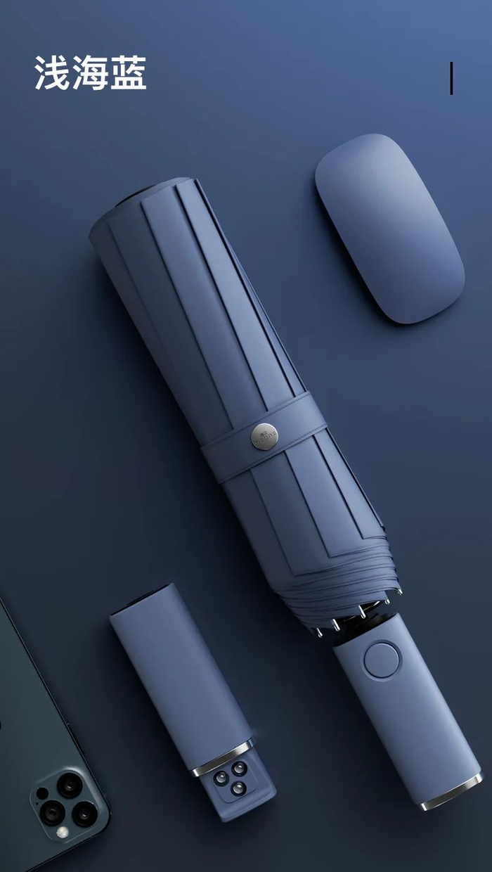 收伞也很方便,按下按钮,就能自动收起伞面。