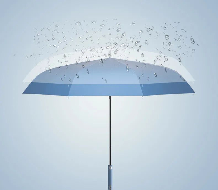 还有伞面疏水层,可以在伞面形成空气层,弹走落在伞上的雨滴达到疏水效果,一甩即干,不会弄脏地板、车座位。