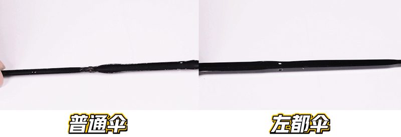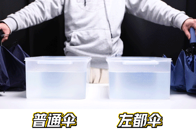 我们还把普通雨伞和左都三摄雨伞一起浸泡在水里来模仿长时间淋雨的状态,30分钟过去后,普通雨伞内已经积了很多水了,而左都雨伞内部依然干燥。