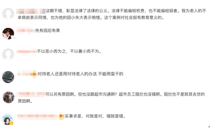 2020年12月8日,江苏省南通市崇川区人民法院驳回了张明母子的诉求。法院认为,超市阻止老人的行为并未超出合理限度范围,老人死亡主要是因为本身有疾病;老人病发突然,超市方也打了110、120电话,已尽到了安全保障义务和基本的救助义务。