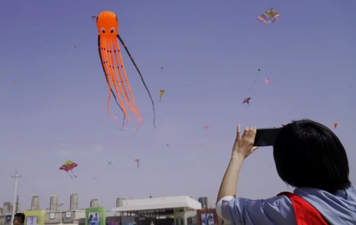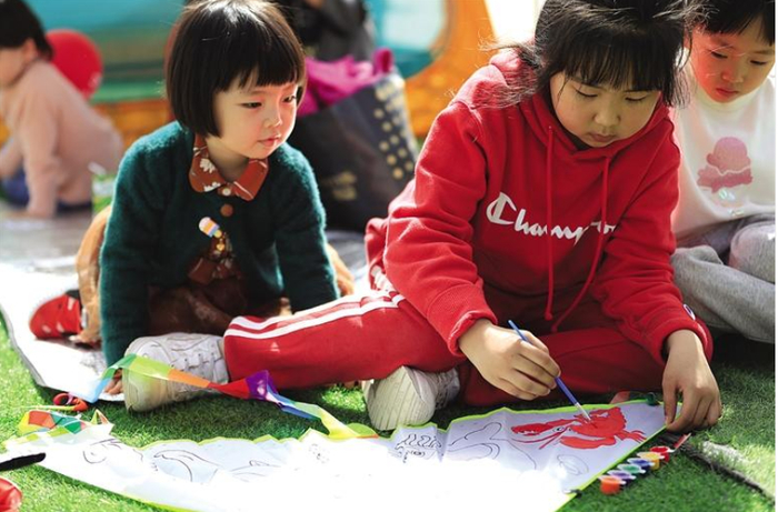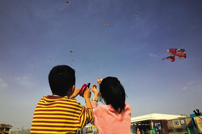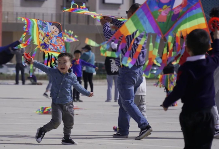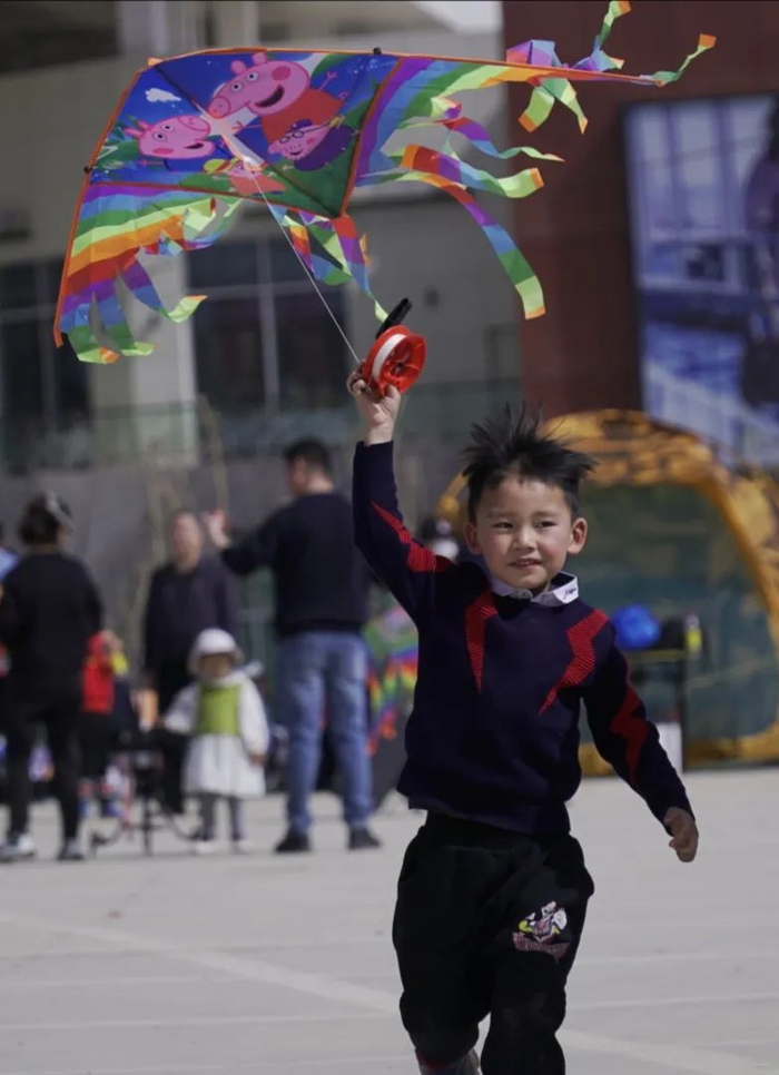 “我爸爸笑得比我还开心!”7岁的王欣然一边跳着一边说,一个劲地催爸爸抓紧时间放风筝线,别太吃劲把线绷断了。妈妈林莎莎看到风筝线不够用了,以百米赛跑的速度去物资认领处又领了一卷风筝线。在儿童风筝涂鸦区,王淼淼在爸爸妈妈、爷爷奶奶的陪伴下画海绵宝宝风筝,一家五口笑着、叫着。爸爸张浩鹏说:“好久没有这样全家齐动员出游了,风筝节让全家人晒了太阳出了汗,孩子特别开心。”