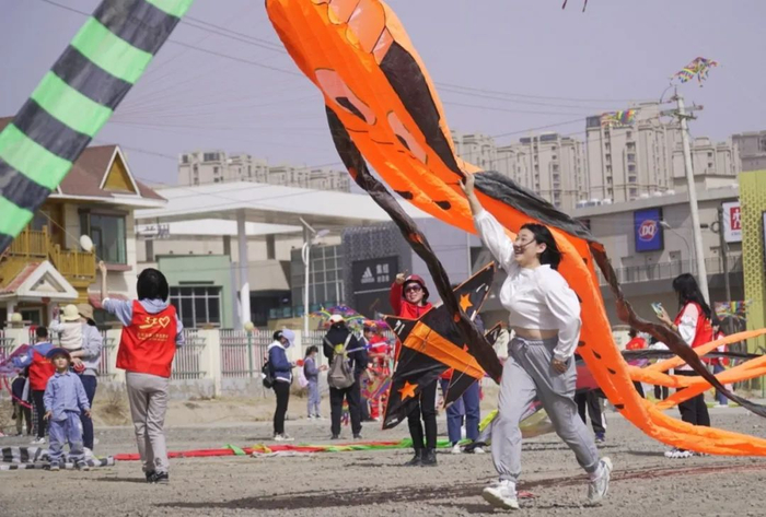“风筝看着小,风起来了拽不动!”74岁的孙兴憨是当天到场的最高龄风筝爱好者,他不但带来了亲手制作的传统风筝,还现场指导大家放飞敦煌飞天主题风筝。“放风筝特别好,运动强度适中,特别适合中老年人的健身活动。”放了几十年风筝的孙兴憨随身带着小刀子,随时帮助身边缠线的放风筝者剪线解围。