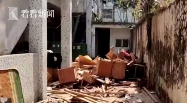 据周边住户介绍,这些东西是4楼业主雇人清理的,而受雇的工人竟将大件的废弃家具和垃圾杂物直接从楼上抛下来,实在让人害怕。