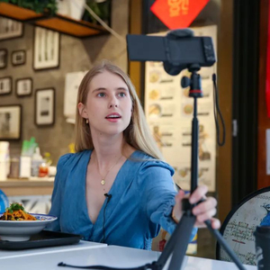 3月16日,在澳大利亚悉尼唐人街,艾米制作自己的美食Vlog。新华社记者白雪飞摄
