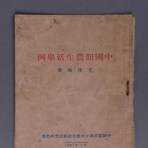 《中国佃农生活举例》是32开纸质铅印本。长19厘米,宽13厘米,用粗线装订。封面上端从右至左印有“中国佃农生活举例”红字书名,稍下方印有“毛泽东著”。