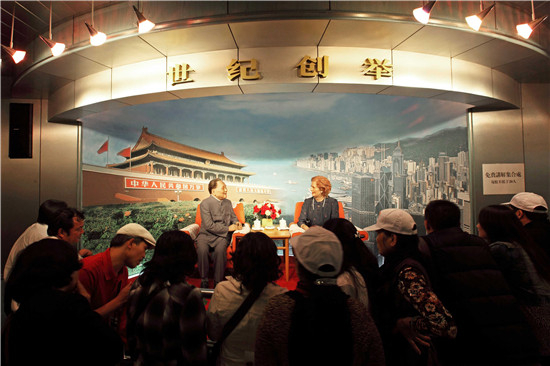 2010年11月,深圳市,纪念深圳经济特区成立30周年的大型展览。展区里再现历史场景:1984年12月邓小平(左)在北京会见英国首相撒切尔夫人。视觉中国供图