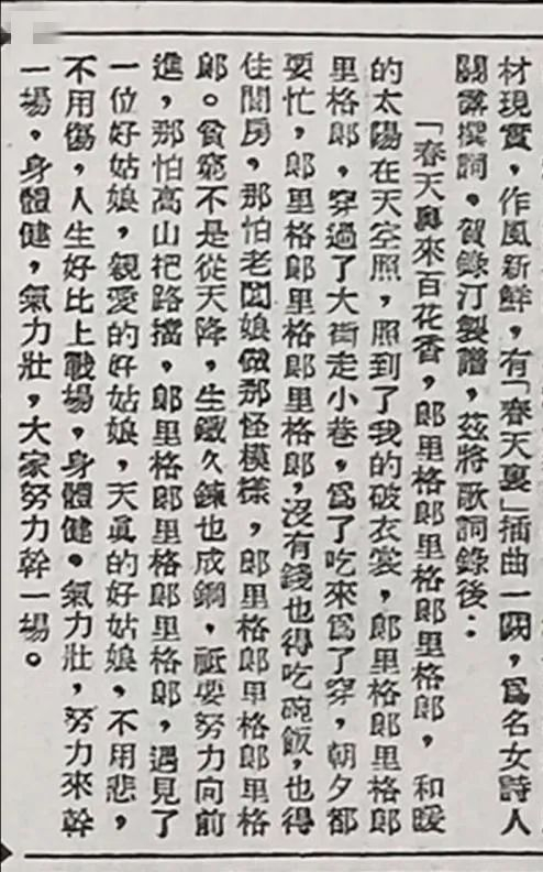 关露创作的《春天里》歌词