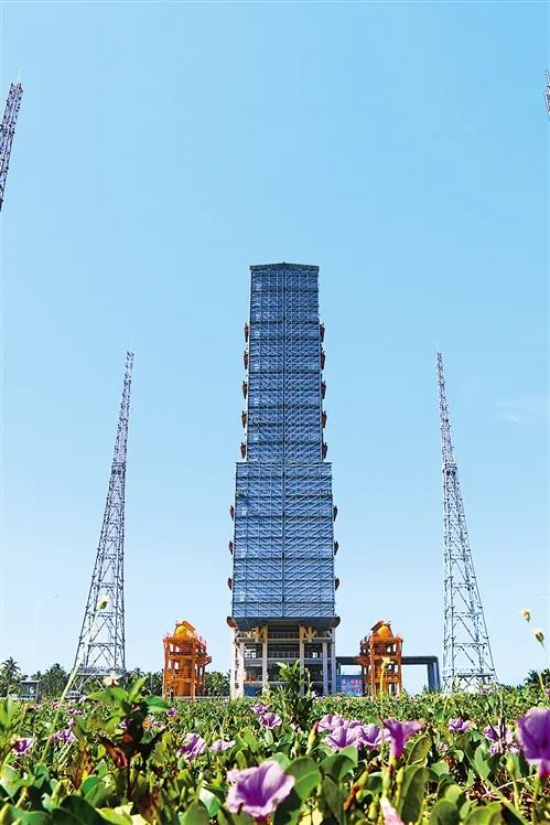 海南文昌航天发射场的长征七号运载火箭发射塔架。新华社记者曾涛摄