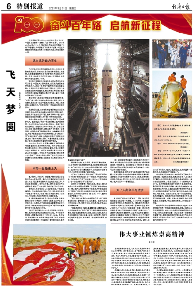在积贫积弱的旧中国,飞向太空只是美丽的神话和美好的梦想。新中国成立后,在中国共产党的领导下,我国首次载人航天飞行任务取得圆满成功,向世界宣告,中国人民有志气、有能力攀登世界科技高峰。