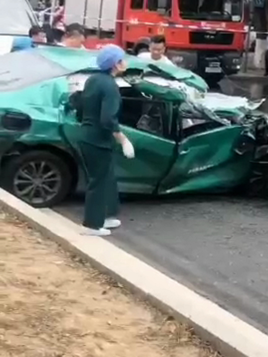 现场车身撞毁严重。