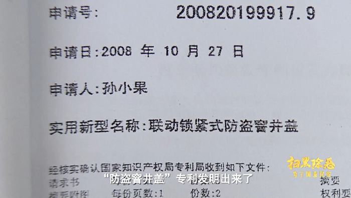 为了让孙小果以最快速度、最大限度减刑,孙鹤予等人还策划出了荒诞的一幕:由省一监总工程师提供设计图纸,管教干警把图纸带进监狱,同监服刑人员按图纸制作出模型,一个署名孙小果的“防盗窨井盖”专利发明出来了,整个过程孙小果从未参与。