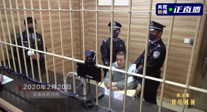 专题片画面显示,在云南看守所,法官面对铁窗内的孙小果宣读了执行死刑的命令,法警指导后者在书面文件上签了字。特写镜头显示,此时的他双眼噙满了泪水,被带走时还露出了微笑的表情。
